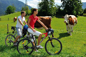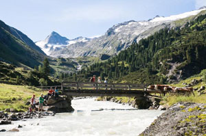 gemütliche Orte. Der Tauernradweg startet in Krimml und schlängelt sich entlang